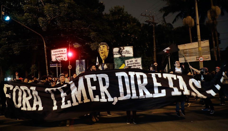 In São Paulo, 100,000 people protested in Largo da Batata, marching to a house belonging to Temer. Most public transit – subways, buses, and trains – did not run. The roads were also blocked. The national president of the Central dos Trabalhadores do Brasil (CTB), the country’s main trade union federation, said in a statement: “Organized civil society, the working class, joined in the movement to say no to the program of labor deregulation and to the pension reform. Only the united people will can turn this nation into a more just country.”