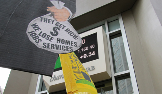 ACCE, Causa Justa/Just Cause, and labor, faith, occupy and community organizations have held repeated protests around the state this year, protesting bank abuses and urging a moratorium on foreclosures.