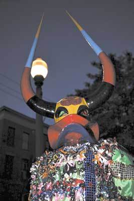 A Dominican woman wears a costume and mask representing the mischievous “Diablos Cojuelos” (Lame Demons), a character portrayed during the February carnivals in the Dominican Republic. Dominicans coming to the United States have brought this cultural custom with them. In this picture the “Diablos Cojuelos” participates in a festival which is part of that town’s effort every year to celebrate Latino Heritage Month.