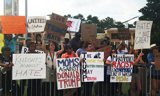 ORLANDO – On March 5, Donald Trump continued his increasingly vulgar campaign with a stop at the University of Central Florida’s CFE Arena. The 9,993-seat arena was just under capacity for the event, but interactions with the people inside and out point to the reason for the turnout having just as much to do with curiosity and animosity than with support.