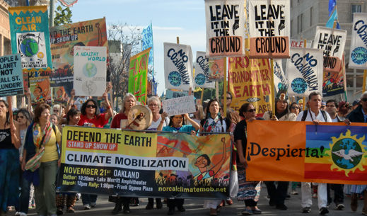 OAKLAND, Calif. — Under the slogan, “Defend the earth. Show up, stand up,” on November 21st, an estimated fifteen hundred people took to the streets of Oakland to march for Climate justice. As a widely spread press release for the event, from the NorCalclimatemob.net website, noted, “a coalition of over 100 labor, environmental, faith, and social justice groups” marched and held a rally to demand “a legally binding global agreement to implement rapid, effective and just responses to climate change at the 2015 UN Conference of Parties in Paris.”