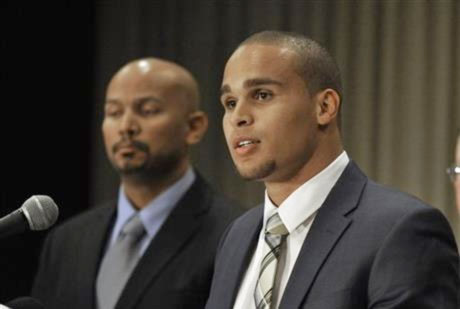 Photo: In this Jan. 28, 2014, file photo, Northwestern quarterback Kain Colter, right, speaks while College Athletes Players Association President Ramogi Huma listens during a news conference in Chicago. In a Wednesday, March 26, 2014, landmark ruling, a federal agency has given football players at Northwestern University the green light to unionize. Paul Beaty/AP