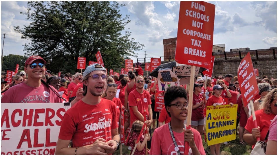COLUMBUS, Ohio—Two thousand teachers and their allies descended on Columbus City Hall Monday evening to protest the city’s practice of granting huge tax giveaways to big developers while its beleaguered public school district is short-changed.