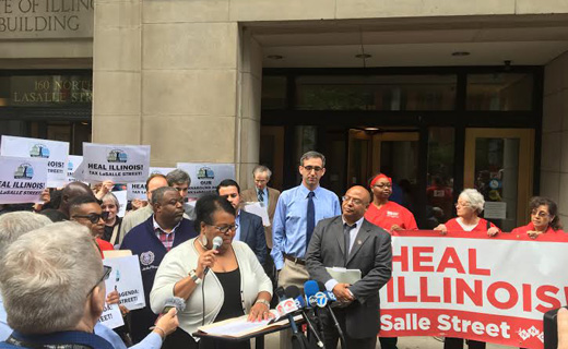 The LaSalle Street Tax (LST) campaign turned out in force with members of National Nurses United, the Chicago Teacher’s Union, Fair Economy Illinois and others packing the hearing in favor of HB106. The bill imposes a small sales fee of $1 on agricultural contracts and $2 on all other futures, futures options and securities index options. Proponents of the tax say that it could increase state revenues by an estimated $10-$12 billion annually.
