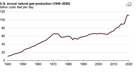 Los productores de EE. UU. quieren participar en la bonanza, especialmente en Europa, donde los precios del gas se quintuplicaron en 2021. EE. UU. es el mayor productor de gas del mundo y extrae más del suelo cada día. Ese ha sido especialmente el caso desde 2005 cuando la producción, que había sido relativamente plana durante décadas, se disparó.
