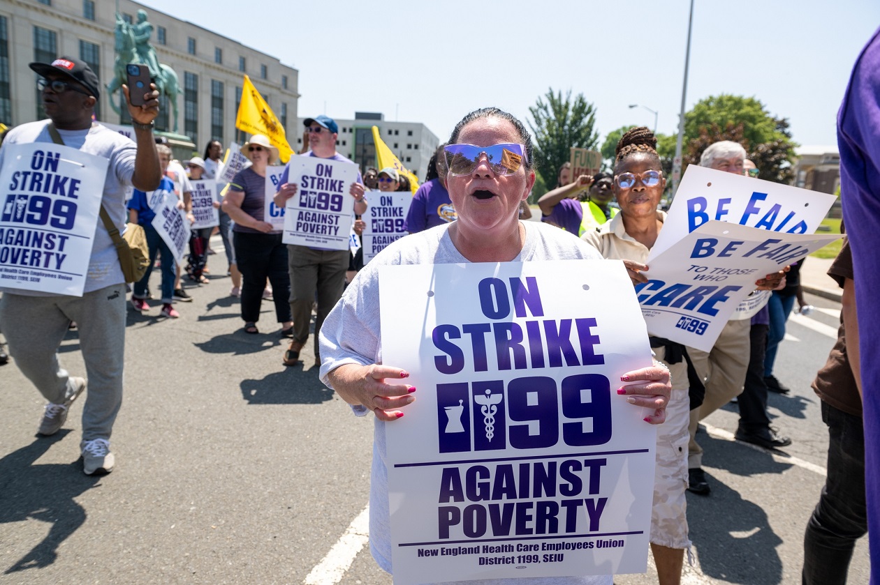Over 1,700 group home and day program caregivers began striking on Wednesday, May 24, at six agencies that provide services for 1,500 individuals with disabilities: Oak Hill, Mosaic, Whole Life, Network, Caring Community, and Alternative Services, Inc. These long-term caregivers are demanding a pathway to $25 per hour minimum wage, affordable healthcare, and funding for retirement after decades of service.