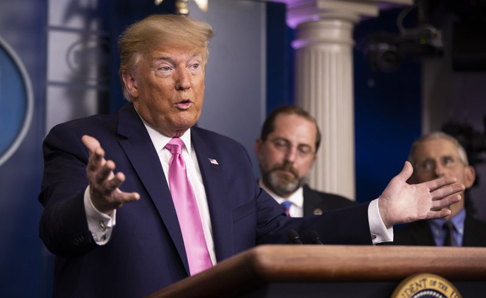 Those lockdowns are something Dr. Anthony Fauci, director of the National Institutes of Health, told Trump’s press conference the U.S. can’t unilaterally do.