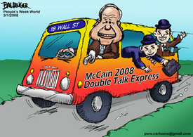 Hustling votes aboard his campaign bus, the “Straight Talk Express,” John McCain spouts clichés at every stop, promising to end “pork barrel” and the “culture of corruption” in Washington if he is elected president.