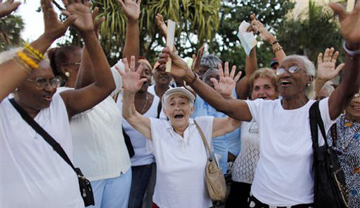 Photo: Cuban seniors sing and dance at the 8th International Congress for Longevity in Havana, May 26. Javier Galeano/AP