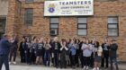 “Jobs not cuts” the theme as demonstrators gathered on the curb by the famous “x” painted on Elm Street. President John F. Kennedy was shot there, and it has become a gathering place for public protests of all sorts.