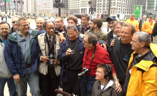 Photo: Some of the 28 photojournalists fired by the Sun-Times, in Chicago, at a June 6 Newspaper Guild rally.  John Bachtell/PW