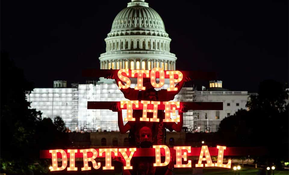 Greenpeace posted a photo/graphic of the lit-up Capitol Dome at night with the words “Stop the dirty deal,” superimposed.