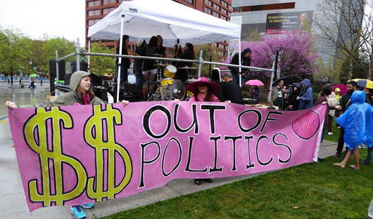 The primary demand is to get big money out of politics; according to the campaign’s website, organizers want “a Congress that will take immediate action to end the corruption of big money in our politics and ensure free and fair elections”. Kai Newkirk, a co-founder of 99rise, who made news in December when he disrupted a Donald Trump speech, noted the wet weather when he told the crowd, “When we stand together, we can change the political weather in this country….” He continued, “We believe in a simple moral principle: we are all created equal, and an equal voice is our birthright…. We are here to reclaim our future and the future of our children…. Everyone has a place in this movement. We can not wait any more; the children of Flint can not wait any more! The problem is not that there aren’t solutions, but that Congress refuses event to consider them”