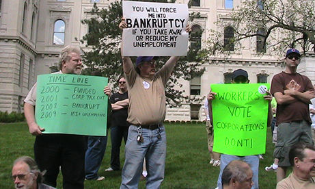 Large numbers of the unemployed are not receiving any benefits, a growing source of public anger. “On average, only two-thirds of unemployed people received state-provided unemployment checks last year, according to the Labor Department. The rest exhausted their benefits, fell short of requirements or did not apply.” Due to welfare reform earlier in the decade, many do not qualify for already restrictive support. “As of 2006, 44 states cut off anyone with a household income totaling 75 percent of the poverty level – then limited to $1,383 a month for a family of three,” writes the Times.