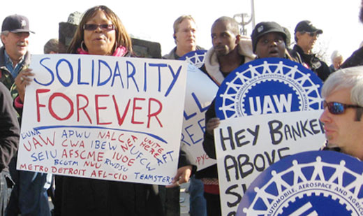 DETROIT – Labor came out in a huge way to lend their support to Occupy Detroit this past Sunday, Nov. 6. Chanting, “We are the 99 percent,” 500 trade unionists proudly marched down Detroit’s main thoroughfare, Woodward Ave., toward the Occupy Detroit encampment at Grand Circus Park. Perhaps even more impressive than their numbers were the material things they brought.