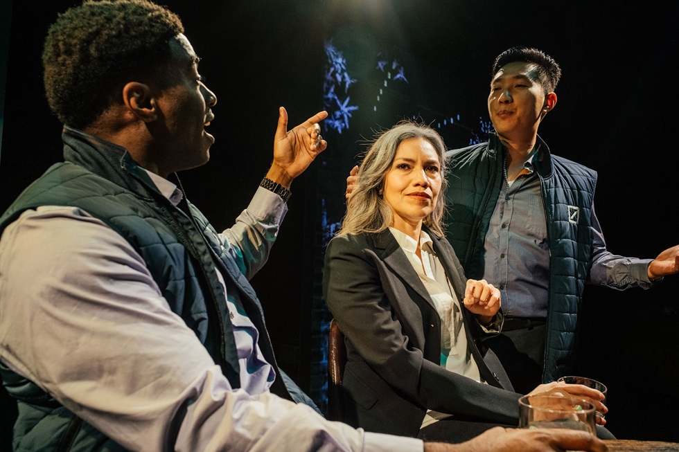 The 95-minute drama is noteworthy for a number of reasons, in addition to the fact that it has a strong female lead and roles for Hispanic actors in a play, as already noted, by and helmed by Latinos. First of all, Alfonso plays with and comments on racial stereotypes: The “hot” Latina, the nose-to-the-grindstone, business-before-pleasure Asian, the Black male who lacks impulse control, and so on. In an email the playwright told me: “The intention was to bring up a number of stereotypes and really shine a light on them, so they serve as a point of frank discussion between the characters.”
