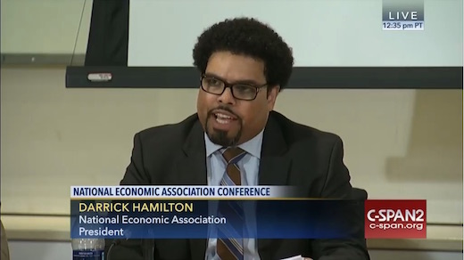 Hamilton began his talk by saying that “much of the framing around racial disparity” in income and wealth “is tied to a ‘culture of poverty’ and low acquisition of education.”