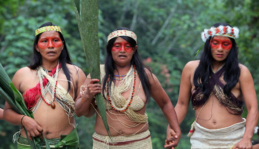 Photo: Members of the Waorani indigenous community take part in a protest against the decision to allow Chevron to conduct oil exploration in Yasuni National Park. AP
