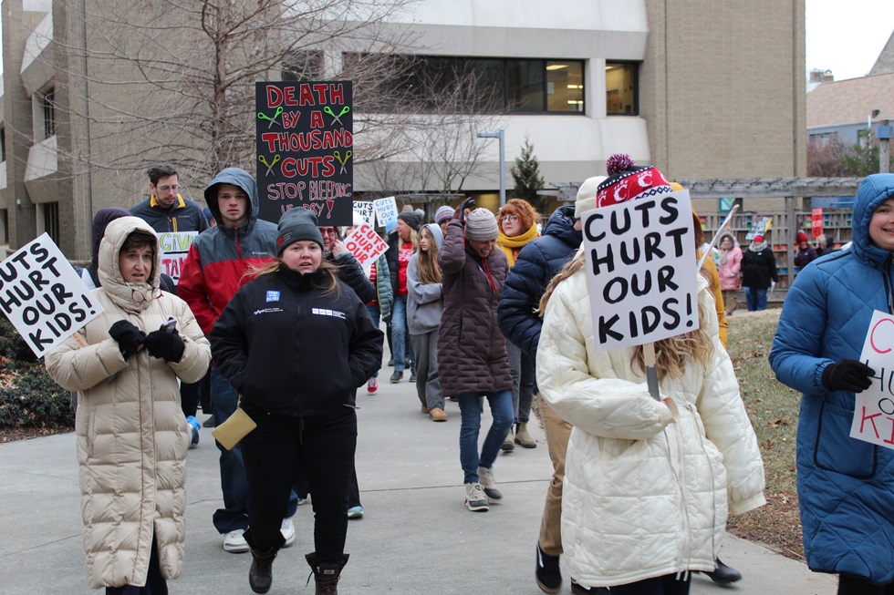 Educators, custodians, students, and allies alike gathered with picket signs and megaphones to shout out their frustration and dissatisfaction with the decision coming down the pipeline. The practice picket came only hours before the commission would motion and decide on whether or not to cut the school’s budget later that night. “Our kids deserve an education” rang out in shouts from frustrated workers hoping to protect the futures of their children, understanding that poor education is poor preparation for life in the United States.