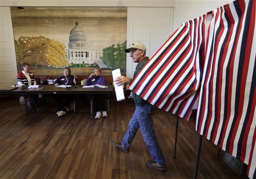 Photo: A voter casts his ballot at the Hayes Township Hall in Ottawa, Kan., Nov. 2. (AP/Charlie Riedel)