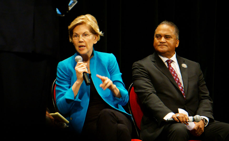Roaring applause welcomed the U.S. Senator from Massachusetts as she took the stage Monday for the first-ever Native American presidential candidates’ forum.