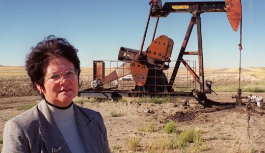 Photo: Elouise Cobell, in front of an oil well on the Blackfeet Indian Reservation near Browning, Mont., Sept. 8, 1999. (AP/Ray Ozman)