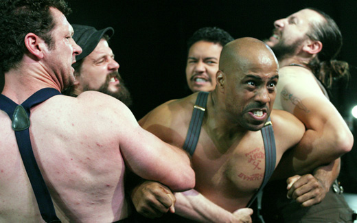 The crew move as one with the heaving and swelling of the waves. I almost regretted I hadn’t taken a Dramamine before I sat down, so realistic did Berkoff make the impression of the movements of a great ship at sea. The other cast members compete with one another in exuding testosterone from every pore, but are less distinguishable as individual characters.