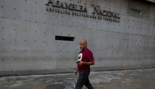 Photo: A pedestrian walks in front of the administrative offices of the Venezuela National Assembly in downtown Caracas, Venezuela. | Fernando Llano/AP