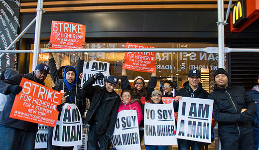 There are 50,000 fast food workers at McDonald’s, Wendy’s, Burger King, Domino’s, Pizza Hut and similar eateries in New York. Most are immigrants, members of minority groups, or both. The average New York fast food worker earns $8.25 hourly.