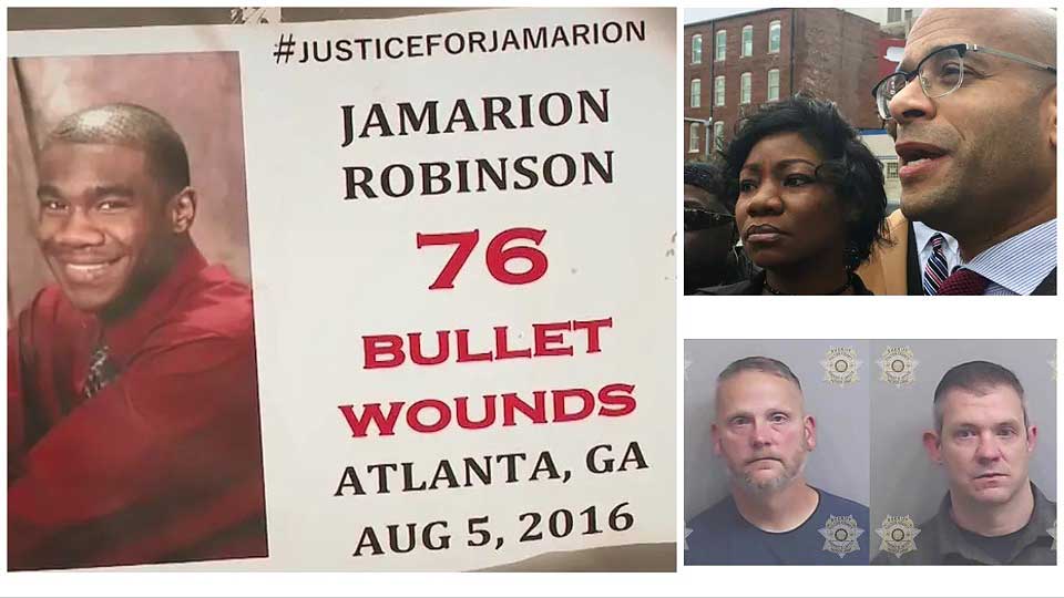 ATLANTA—One minute and fifty-seven seconds. That’s the amount of time that passed between the first and last bullet that officers of the Southeast Regional Fugitive Task Force fired at Jamarion Robinson on Aug. 5, 2016, in East Point, Georgia. Clayton County officer Eric Heinze and U.S. Marshall Kristopher Hutchens, among others, left the man with 76 bullet wounds and then dragged his body down a flight of stairs while he was handcuffed.