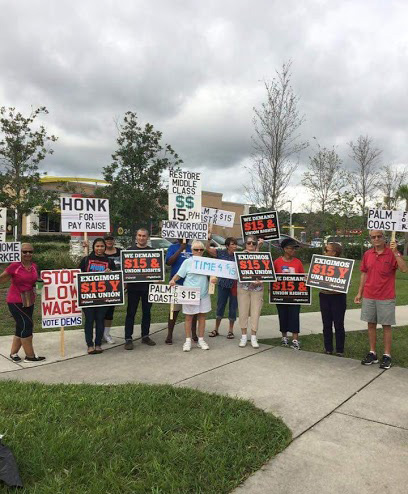 Team Flagler (Flagler County, Fla.), part of the Democratic Progressive Caucus of Florida, held a sign calling for a $15 minimum wage and the right to form a union at a busy intersection in Palm Coast (30 minutes north of Daytona Beach). They were joined by other Democratic activists, retired union members and representatives from the Volusia/Flagler AFL-CIO.