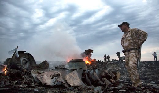 Photo: At the Malaysian airliner crash site near the village of Hrabove, Ukraine, July 17. Dmitry Lovetsky/AP