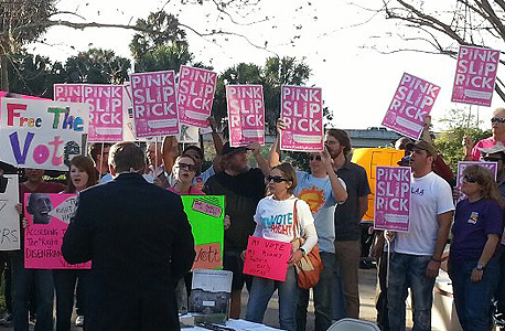 ORLANDO, FL. – Several dozen residents rallied here at a downtown park March 5 –the first day of the 2013 Florida legislative session – to demand “true election reform” that would make voting in the Sunshine State “free, fair and accessible to all.”