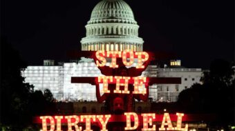 Photo: Members of the Communist-affiliated PAME labor organization stand behind a banner as they blockade the Athens Stock Market, Feb. 23, ahead of the 24-hour general strike called by the country’s main unions. (AP/Petros Giannakouris)
