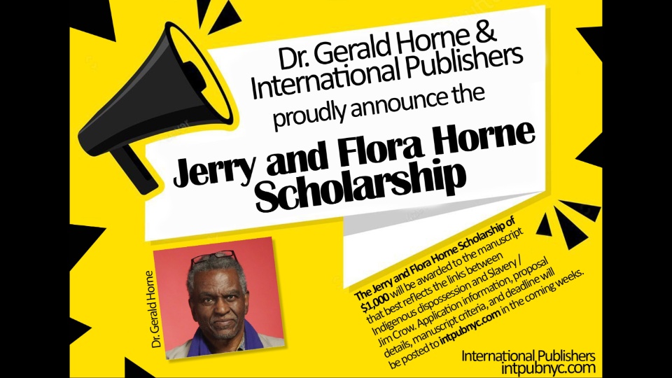 The Jerry and Flora Horne Scholarship will award $1,000 to the winning applicant. Horne—known for such books as Revolting Capital, Black Liberation/Red Scare, The Counter-Revolution of 1836, and so many more—has provided the endowment for the prize. International Publishers, one of the leading Marxist presses in the U.S., will oversee the review process.