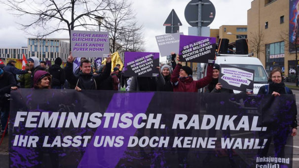 As for neo-fascists, their leaders, male or female, were the last ones to be expected on Women’s Day even though Alice Weidel, head of the Alternative for Germany (AfD) caucus in the Bundestag, lives and raises two sons with a woman partner from Sri Lanka. But her party denounces same-gender marriage, abortion rights, higher taxes for the wealthy. Its speeches drip with hatred toward the “take-over” of Europe by nasty Muslims but praise Germany’s past greatness before losing The War. But Weidel and two male party leaders are now busy fighting charges of fraud — accepting illegal donations from shady donors in Switzerland and elsewhere. Nobody missed them at Alex. But they still get 12-14 percent in the polls and threaten to gain new strength in the May and September elections.