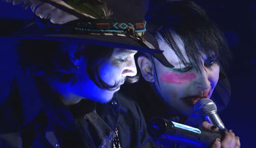 First, 18 year-old actress/hard rock singer Taylor Momsen performed a racy duet with her shock-rocker idol. Next, Johnny Depp stepped on stage, to tumultuous applause, and played guitar as Manson performed “Sweet Dreams” (a cover of the 1980s Eurythmics’ pop song), and original fan favorite, “The Beautiful People.”