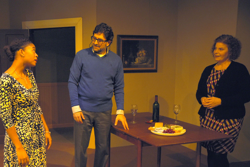 Good People centers on Margie (Alison Blanchard), a single mom caring for a grown, severely autistic daughter requiring constant supervision and care. The opening scene has her being fired from her job at the Dollar Store for repeat tardiness, and now she faces eviction. Her buddies at the local church Bingo game suggest that she look up an old fling and ask him for a job. Mike (Scott Facher), the former boyfriend, has become a prominent M.D. specializing in problematic reproductive cases, and now lives in Chestnut Hill with his younger, beautiful Black wife and their daughter. Their volatile exchanges, one in Act 1 and another in Act 2, anchor the drama.