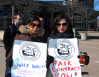 CHICAGO — The Graduate Employees Organization at the University of Illinois at Chicago held a rally titled “Don’t Make Us Strike” Mar. 13 to protest what they say is the stalling of their negotiations for a contract by the university administration.