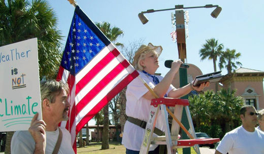 Later in the day, the tea partiers listened to a global warming denier speak in the restaurant. The progressive rally was in the street by the old railway station. Randy the Geothermal Guy spoke there and explained how Texas has about 500,000 ready-made geothermal drilled wells set up that could be turned into immediate sources of heated energy to produce clean, cheap and renewable electricity.