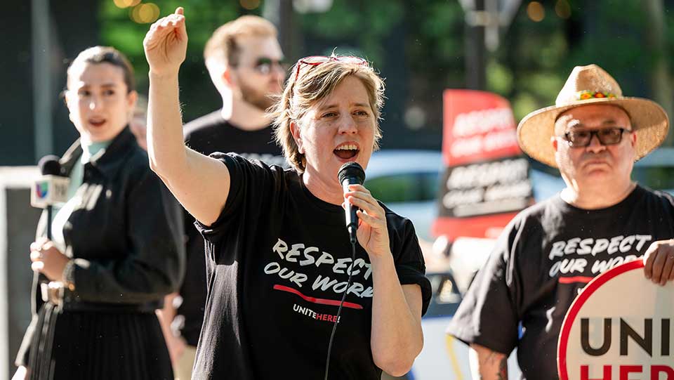 “We don’t shy away from taking on powerful corporate interests, and we don’t back down from a fight,” Mills told the delegates in her inaugural address. “Now is the time to do even more to support workers who want a union. Unite HERE members enjoy a standard millions of other hospitality workers in the U.S. and Canada don’t yet have.