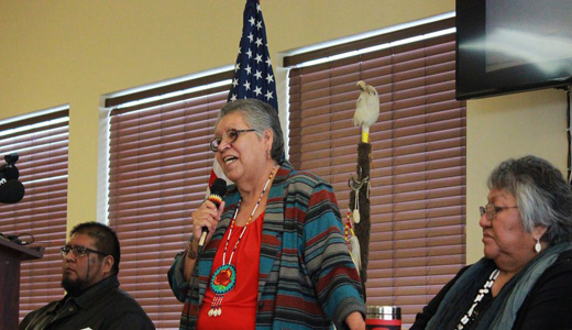 Photo: Burns-Paiute tribal chairperson Charlotte Rodrique talks to reporters about the armed occupation of the Malheur refuge. | Manuel Valdes/AP
