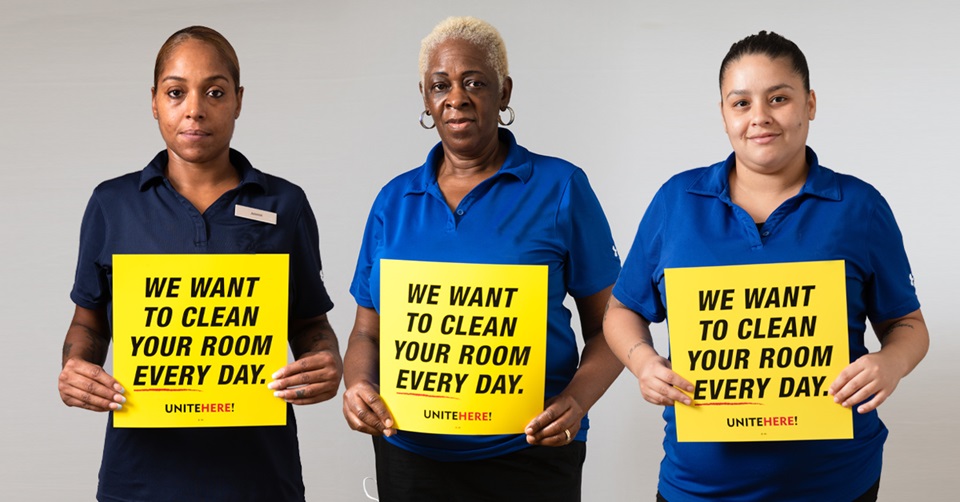 “Housekeepers report daily cleaning is essential to manage their difficult job. Daily is best for managing trash, tackling tough stains, and using less chemicals,” Unite HERE said on its website. It also helps prevent bedbug infestations.