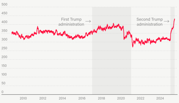 Across the country, civil rights attorneys and detained immigrants report similarly dire conditions. Statistics released by Immigration and Customs Enforcement in late July showed the agency holding nearly 57,000 people, a 45% increase since Trump’s inauguration.