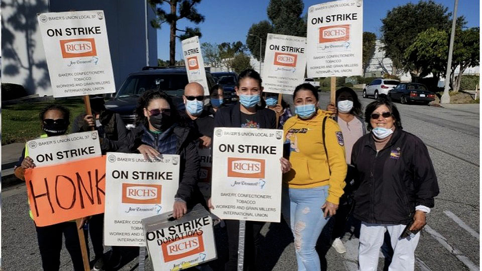 El apoyo laboral, político y comunitario a los trabajadores en huelga de Donaire se está extendiendo por todo el país. El 12 de enero, U. S. Los senadores Bernie Sanders (Ind-VT) y Alex Padilla (Dem-CA) emitieron una carta instando a Rich Corp. a regresar a la mesa de negociación “de buena fe”. A ellos se unieron en la carta abierta los senadores Elizabeth Warren (Dem-MA), Sherrod Brown (Dem-OH), Edward Markey (Dem-MA), Tammy Baldwin (Dem-WI) y Cory Booker (Dem-NJ). Los senadores señalaron que el salario promedio de los trabajadores es de menos de $ 17 por hora, con velocidades de trabajo de hasta 38 pasteles por minuto, a menudo con horas extras obligatorias de aviso tardío que conducen a turnos de hasta 16 horas, mientras que Rich Products tiene un patrimonio neto estimado de más de $ 7.5 mil millones según el índice Bloomberg Billionaires.