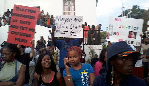 With the sun going down and many people becoming restless from not hearing any news from inside, the crowd decided to march to the Sanford Police Department – about five blocks east of the church. The chanting continued during the march and for about 45 minutes outside the police station. Many volunteers, who appeared to just emerge from the crowd, made sure that the roadway was kept clear and that things remained peaceful.