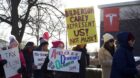 Rally participants then marched from the port to downtown Oakland, where they gathered for a second rally at Oscar Grant Plaza in front of City Hall.