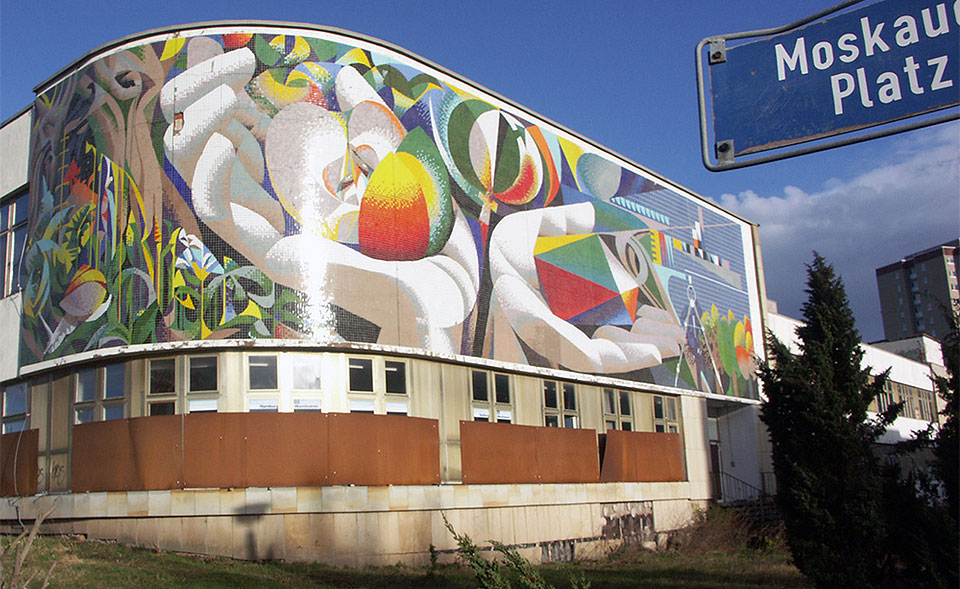 Many GDR works were discarded or destroyed after 1990, but the Erfurt mosaic (and the Halle-Neustadt murals) survived. But in 2012 the cultural center – like nearly all of its kind – received a death sentence. It was replaced by a shopping center, which saved the city costs and brought money into the pockets of persuasive new owners. As for the Renau work, due for demolition, it was again a small group of devotees who managed to rescue it – but only after it was sawed into many sections, put away in a storage building, and almost forgotten.