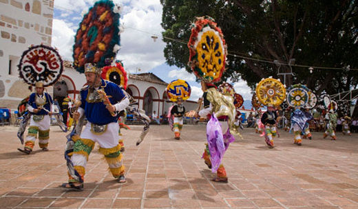 The name of the city, Teotitlán, comes from Nahuatl and means “land of the gods”. Its Zapotec name is Xaguixe, which means “at the foot of the mountain”. It still retains its Zapotec culture and language. The dance is performed in the town plaza in front of the Preciosa Sangre de Cristo Church, begun in 1581 and completed in 1758. The church sits on the ruins of a Zapotec temple, which the Spanish destroyed.