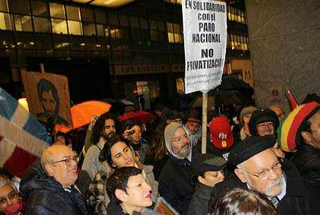 NEW YORK — Braving the cold, the wind, and the rain, Puerto Ricans and others gathered in front of the offices of the Puerto Rico Federal Affairs Administration here Oct. 15 in support of their brothers and sisters in Puerto Rico who marched 100,000-plus strong to protest the latest wholesale firings of government workers by Gov. Luis Fortuño. He was elected to his first term last year as a Republican, promising to jumpstart the economy, but so far, job losses and negative growth have continued.